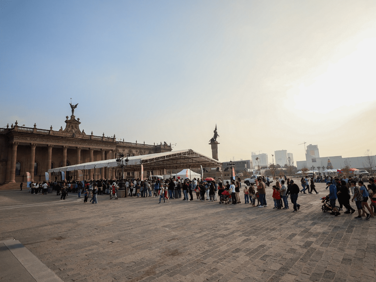 La respuesta ciudadana superó las expectativas durante la macrobrigada de vacunación contra el sarampión, organizada por la Secretaría de Salud de Nuevo León en la Explanada de los Héroes, donde desde temprana hora se registraron largas filas de familias.