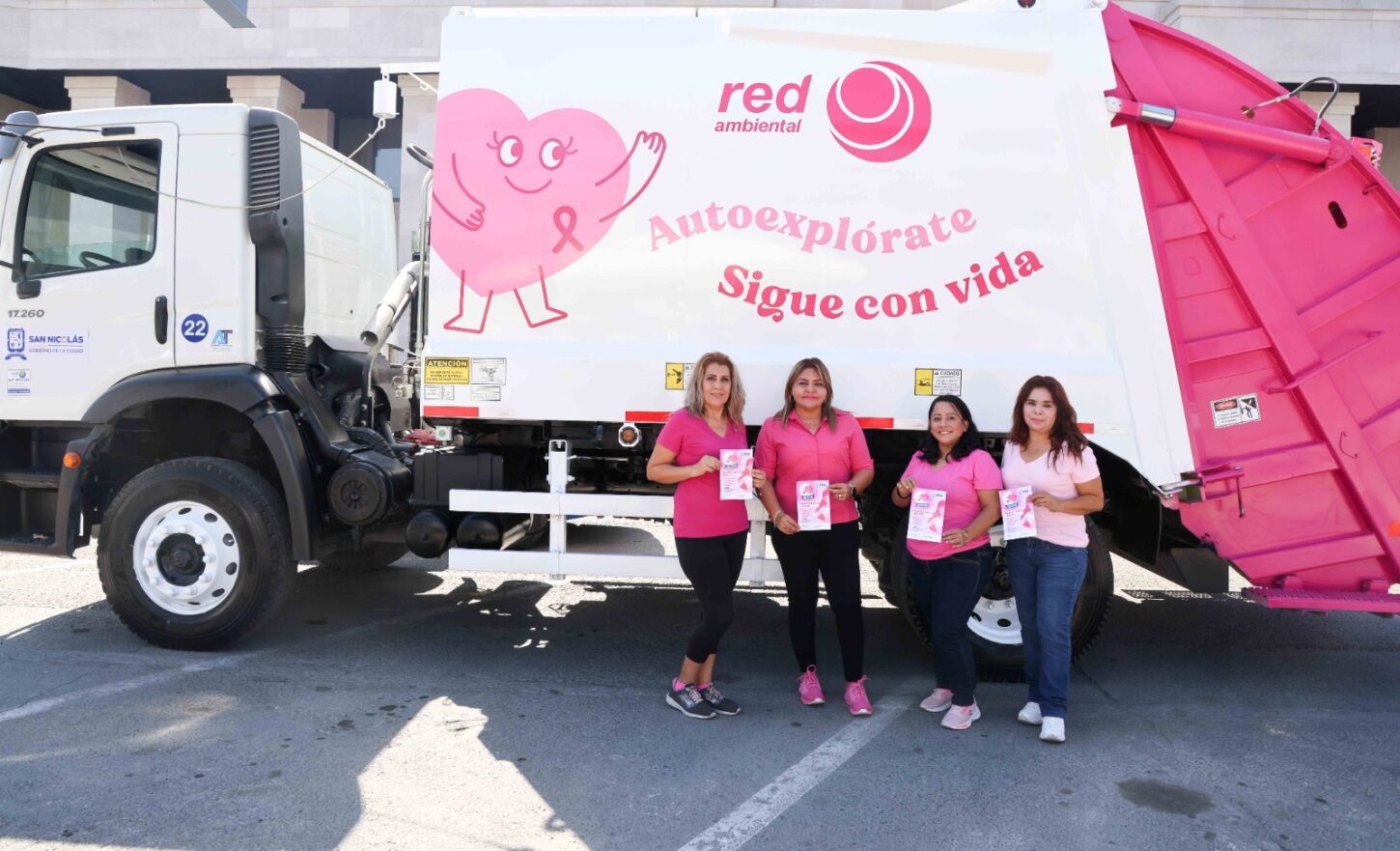 Durante este mes de sensibilización sobre el cáncer de mama, el Gobierno Municipal de San Nicolás, en colaboración con Red Ambiental, también promoverá la autoexploración a través de camiones de limpieza rotulados con la leyenda: “Autoexplórate, sigue con vida”.