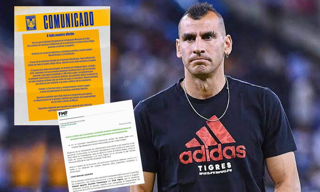 “En su carácter autónomo, esta Comisión ha resuelto sancionar con 11 partidos de suspensión, una multa económica y horas de trabajo social al jugador Nahuel Ignacio Guzmán Palomeque del Club Tigres, por la conducta mostrada durante el partido referido que transgrede el Reglamento de Sanciones de la FMF”, explicó el organismo en un comunicado.