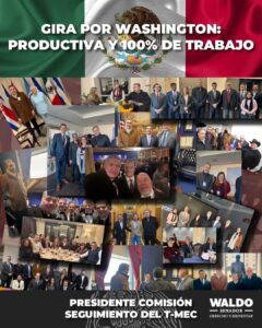 La agenda del senador incluyó paneles, conferencias y encuentros con legisladores, líderes empresariales y representantes de instituciones internacionales enfocados en la revisión y fortalecimiento del T-MEC. Entre los temas destacados estuvieron: