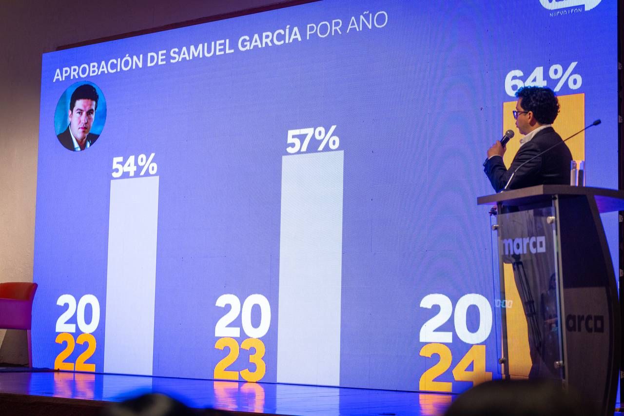 Los datos fueron presentados en el Museo MARCO, donde se reveló que el mandatario estatal obtuvo una calificación del 64% de aprobación, cifra superior a la del año anterior.