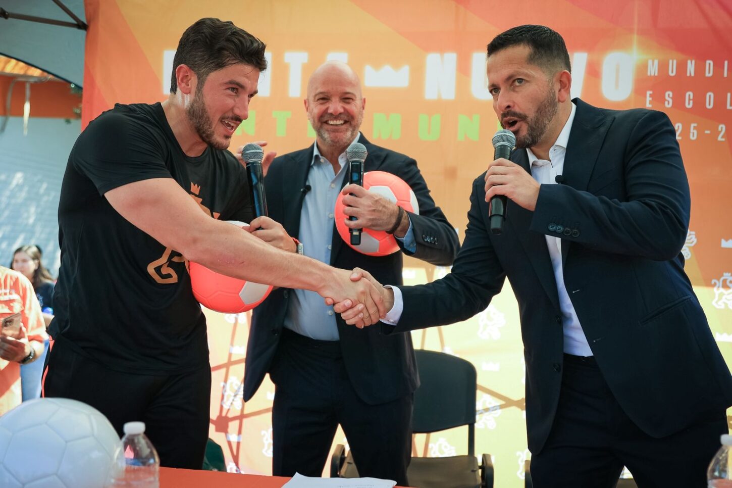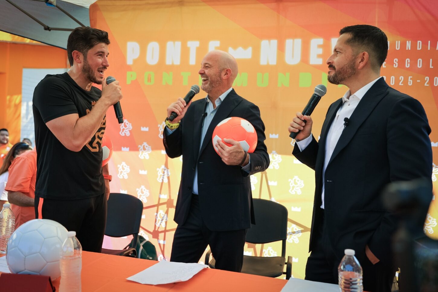 En un ambiente de fiesta, niñas y niños convivieron con las figuras del periodismo deportivo, quienes se sumaron a la iniciativa “Ponte Nuevo, Ponte Mundial”, programa que busca transformar la infraestructura escolar para fortalecer la educación integral mediante el deporte.