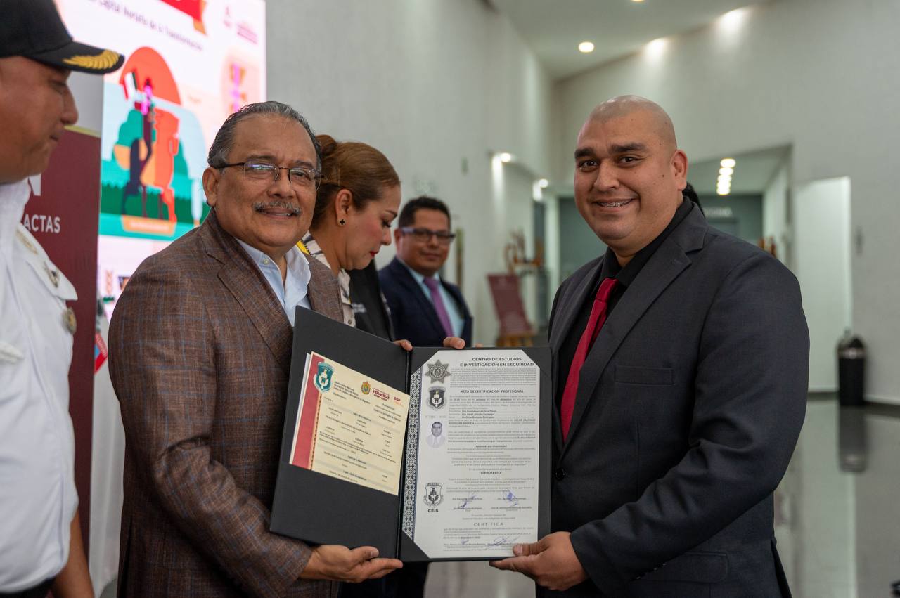 La ceremonia fue encabezada por el alcalde Andrés Mijes, junto a directivos del Centro de Estudios e Investigación en Seguridad, y se llevó a cabo en el Teatro Digital Fidel Velázquez.