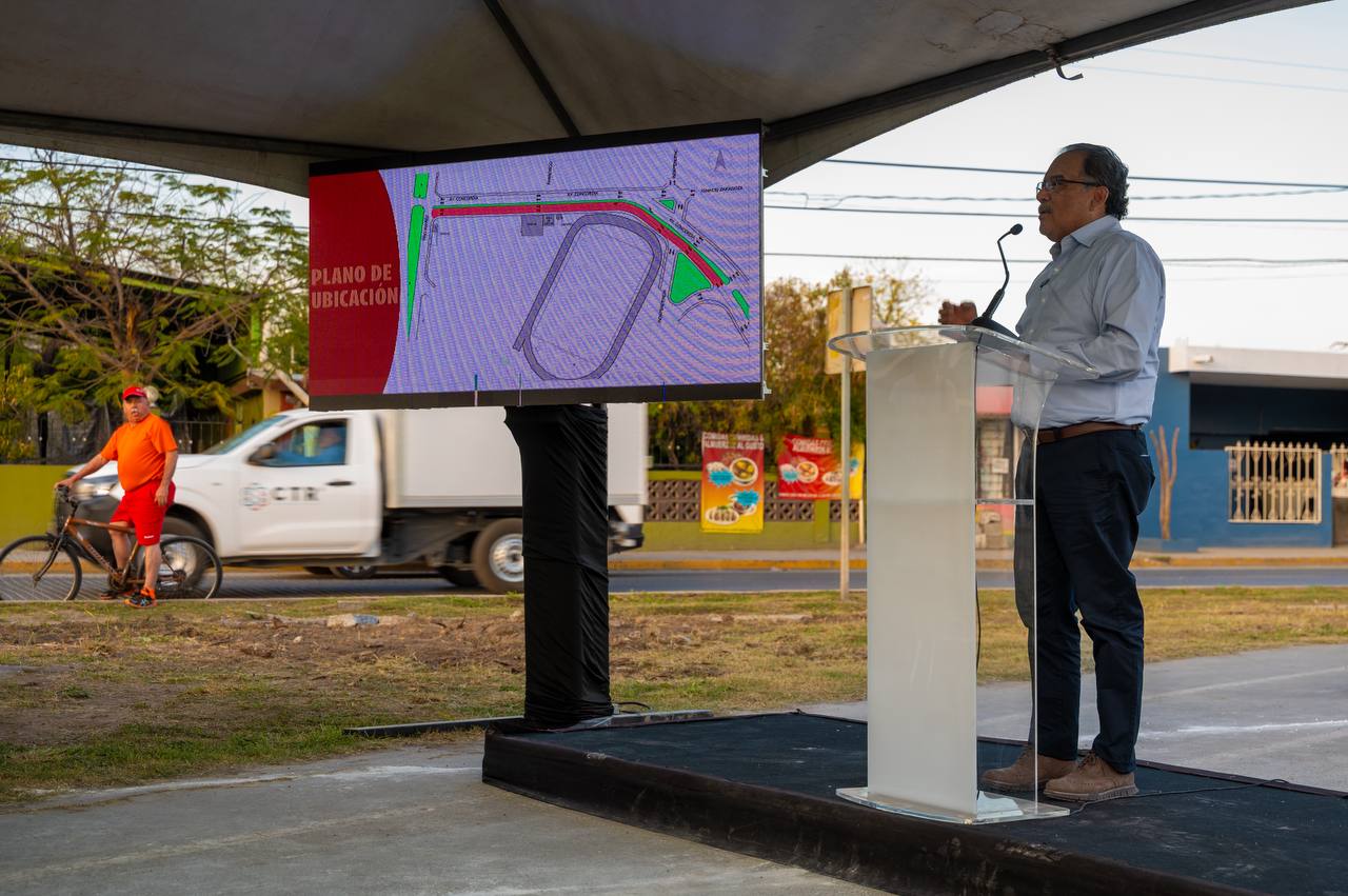 Además, la nueva configuración vial permitirá retirar el tráfico de paso que actualmente circula frente a la unidad deportiva, donde se registra un alto cruce peatonal, generando un entorno más ordenado y seguro.