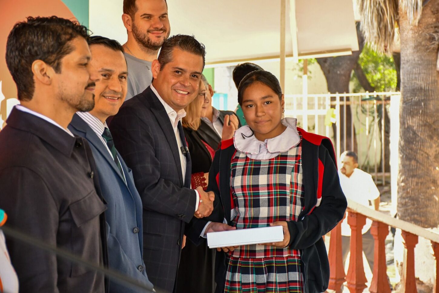 “Hoy, con el programa Dale Clic y Ponte Nuevo’, entregamos iPads de 9ª generación a 270 alumnos de secundaria con el mejor aprovechamiento escolar”, agregó Domínguez Martín del Campo.