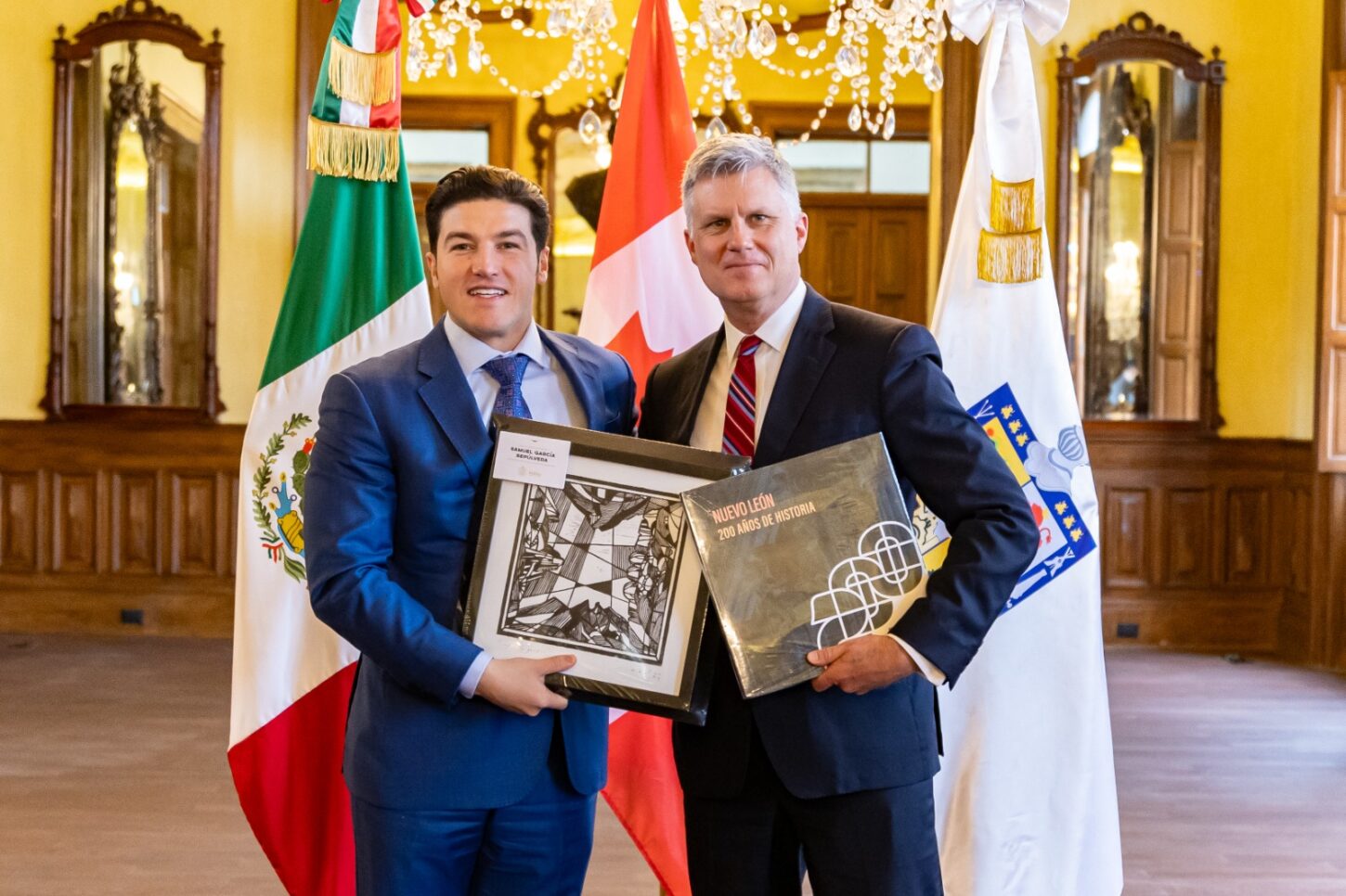 El Gobernador de Nuevo León, Samuel Alejandro García Sepúlveda, recibió en Palacio de Gobierno al Embajador de Canadá en México, Cameron MacKay, para reforzar los lazos de cooperación y fortalecer las relaciones comerciales y culturales entre el estado y el país de Norteamérica.