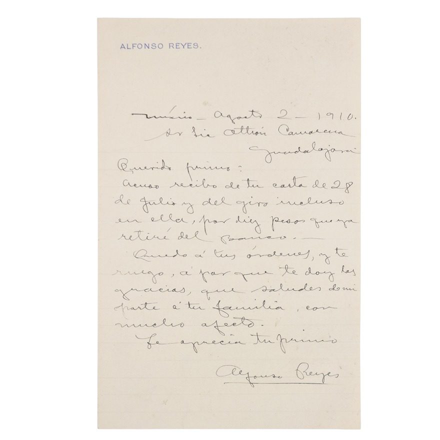 En el ámbito cultural resalta una carta autógrafa de Alfonso Reyes, escrita en 1910, que ofrece una mirada íntima al joven escritor de 21 años, donde ya se asoman los rasgos de su pensamiento literario. Asimismo, se subastarán retratos oficiales del emperador Maximiliano I y de la emperatriz Carlota.