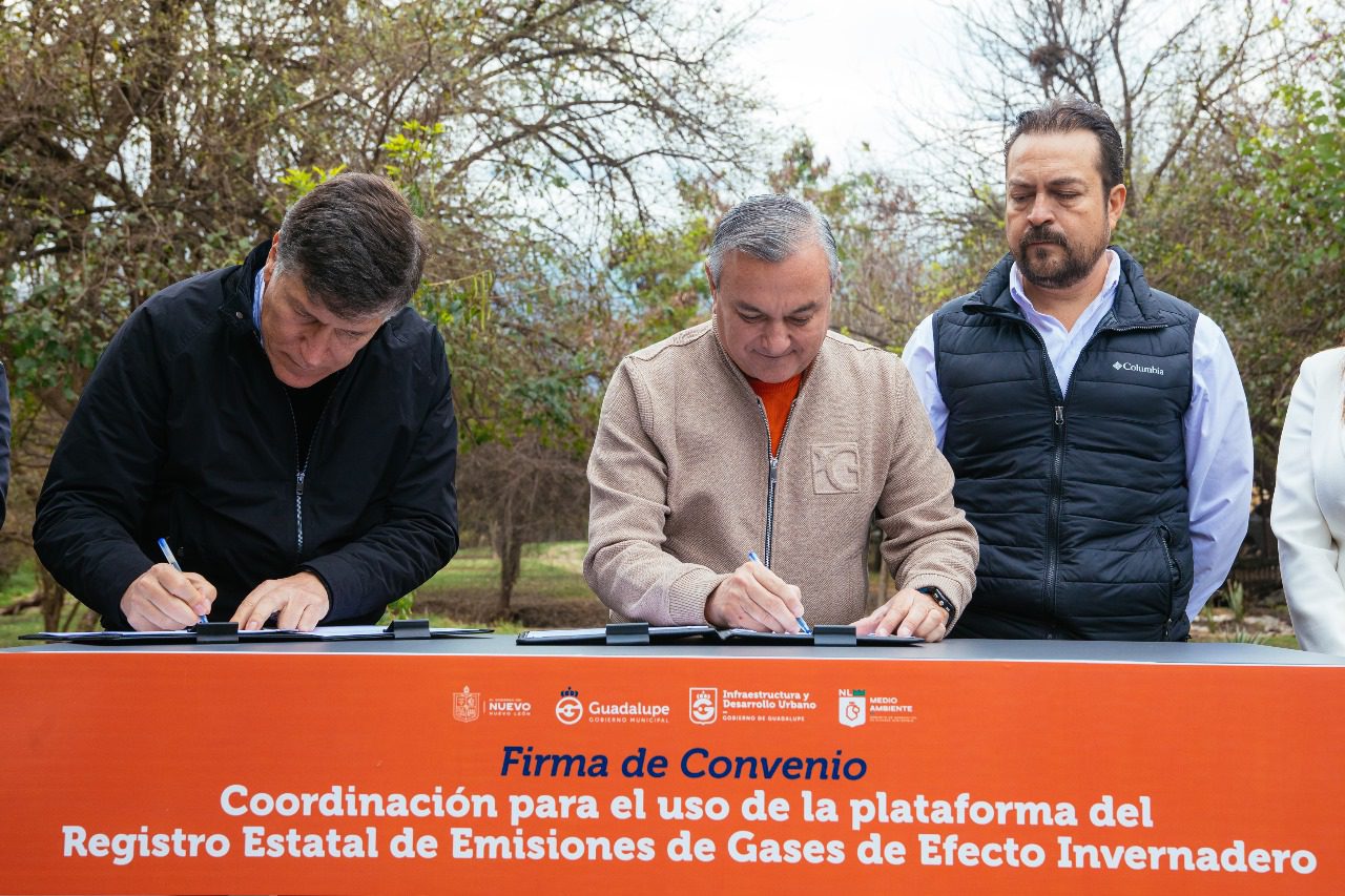 Con el objetivo de prevenir contingencias ambientales, el alcalde de Guadalupe, Héctor García, y el secretario de Medio Ambiente estatal, Alfonso Martínez, firmaron un convenio para implementar la plataforma del Registro de Emisiones de Gases de Efecto Invernadero.