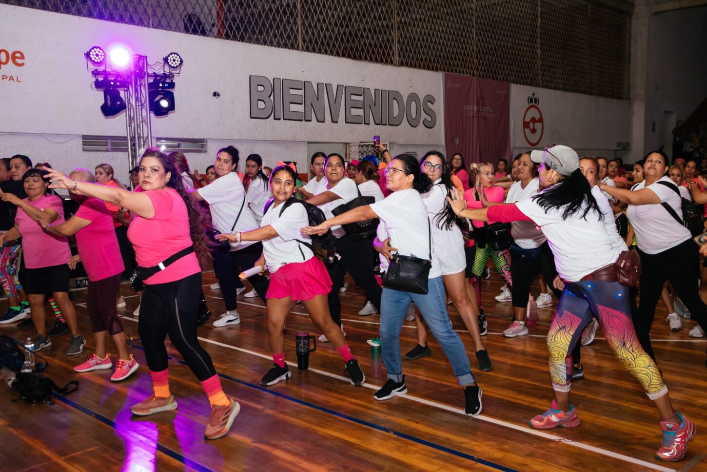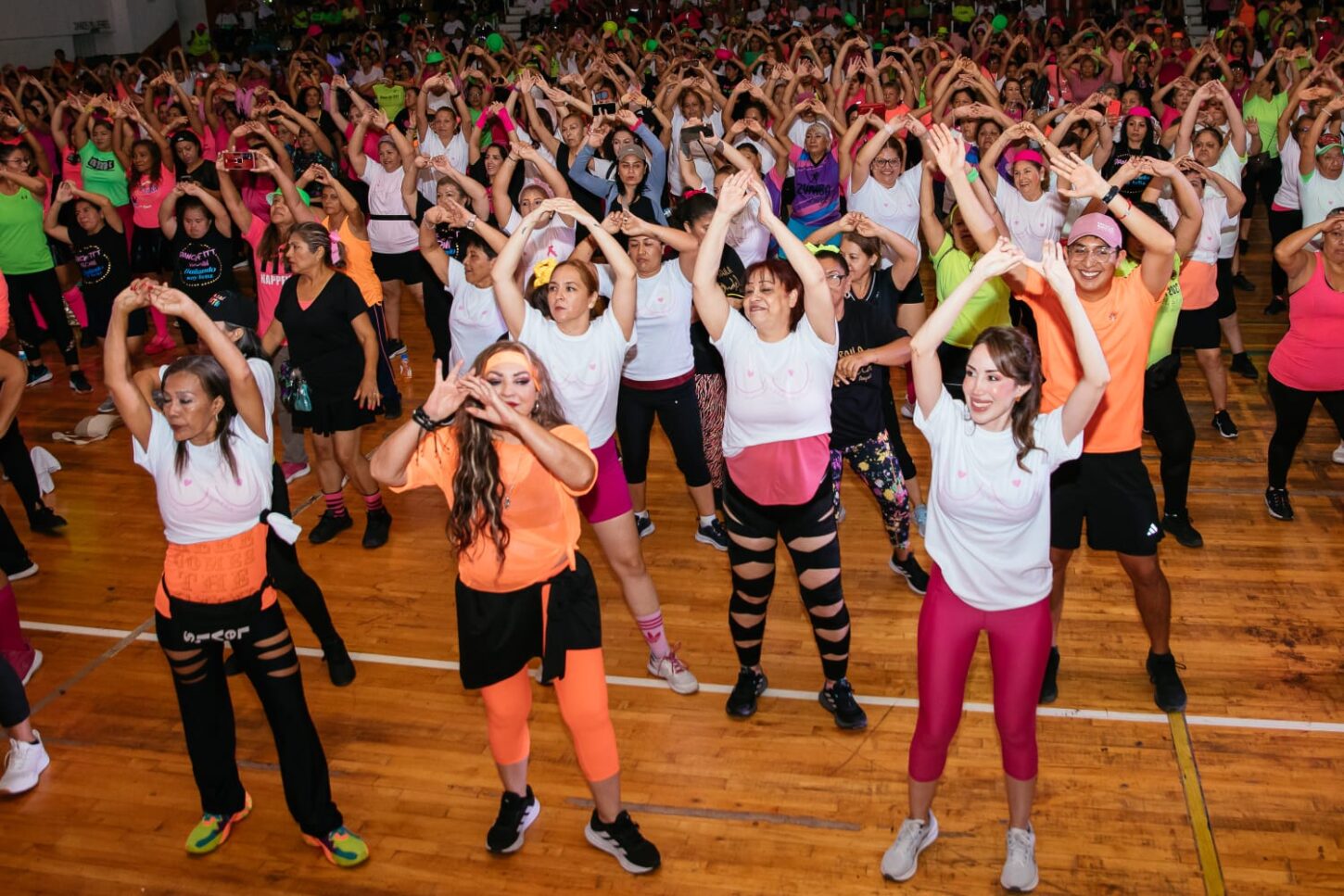 Más de 700 participantes se reunieron en el gimnasio del CEDEREG para formar parte de la campaña “Bailando contra el Cáncer”, organizada por el Gobierno de Guadalupe.