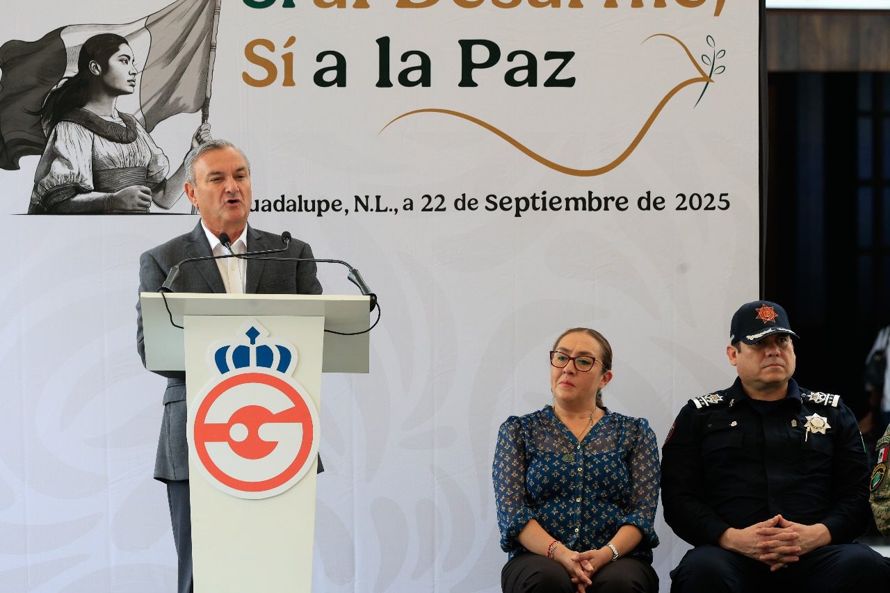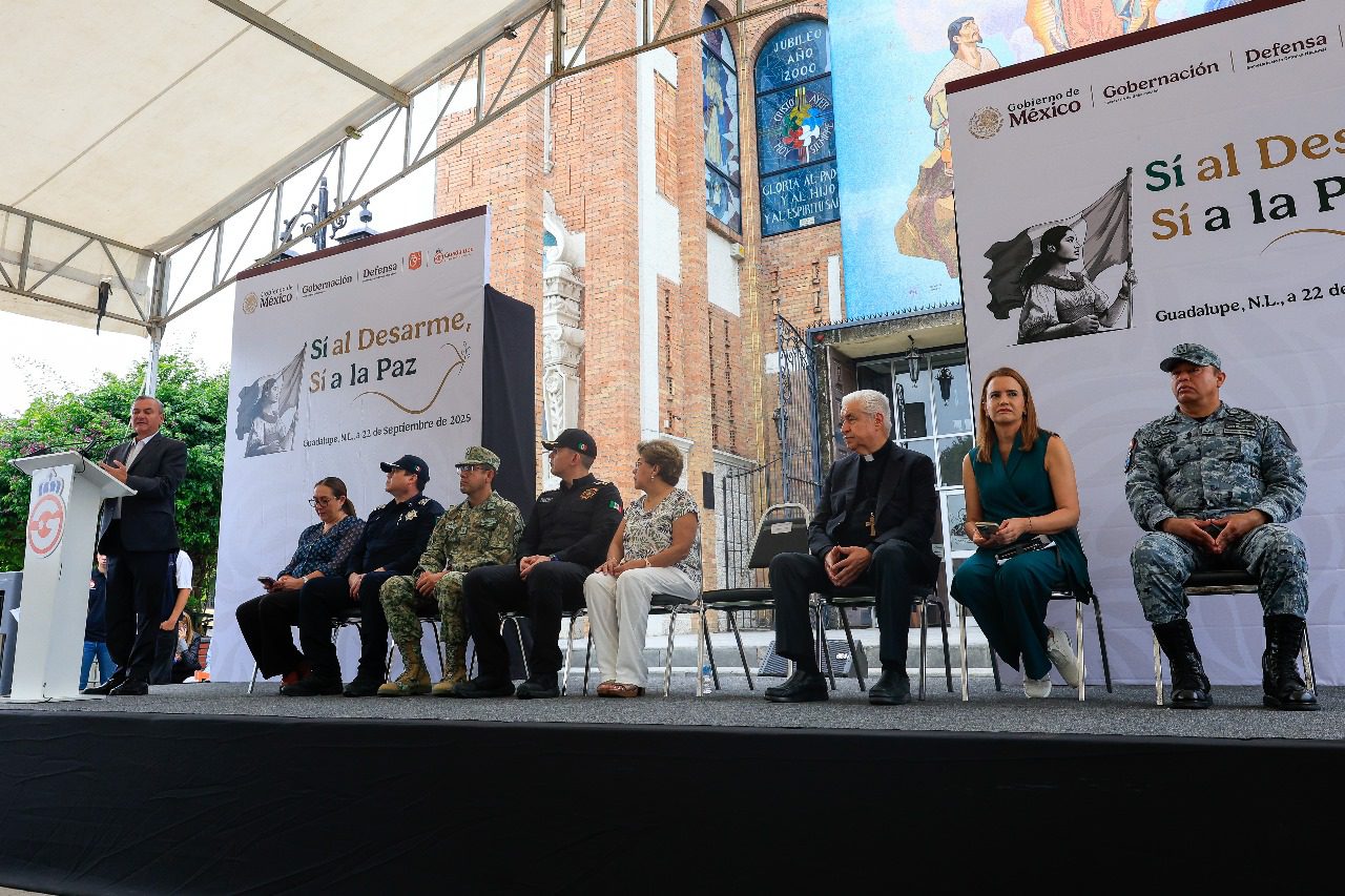 El alcalde ofreció estas declaraciones tras participar en el evento “Sí al desarme, sí a la paz”, en el que se intercambiaron armas por dinero en efectivo, y que contó con la presencia de la Subsecretaria de Construcción de Paz, Rocío Bárcena, y la Directora General de Asociaciones Religiosas, Clara Luz Flores.