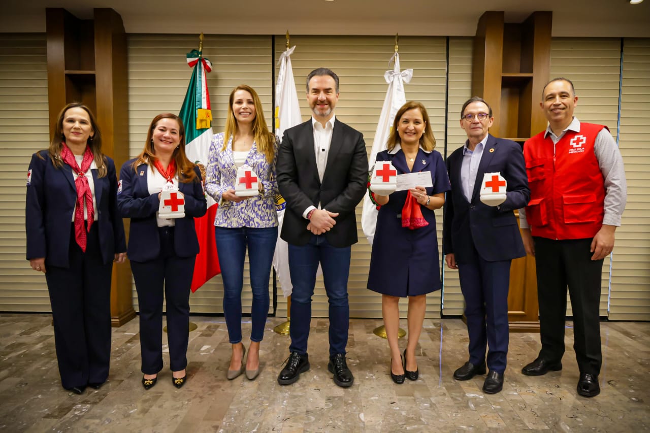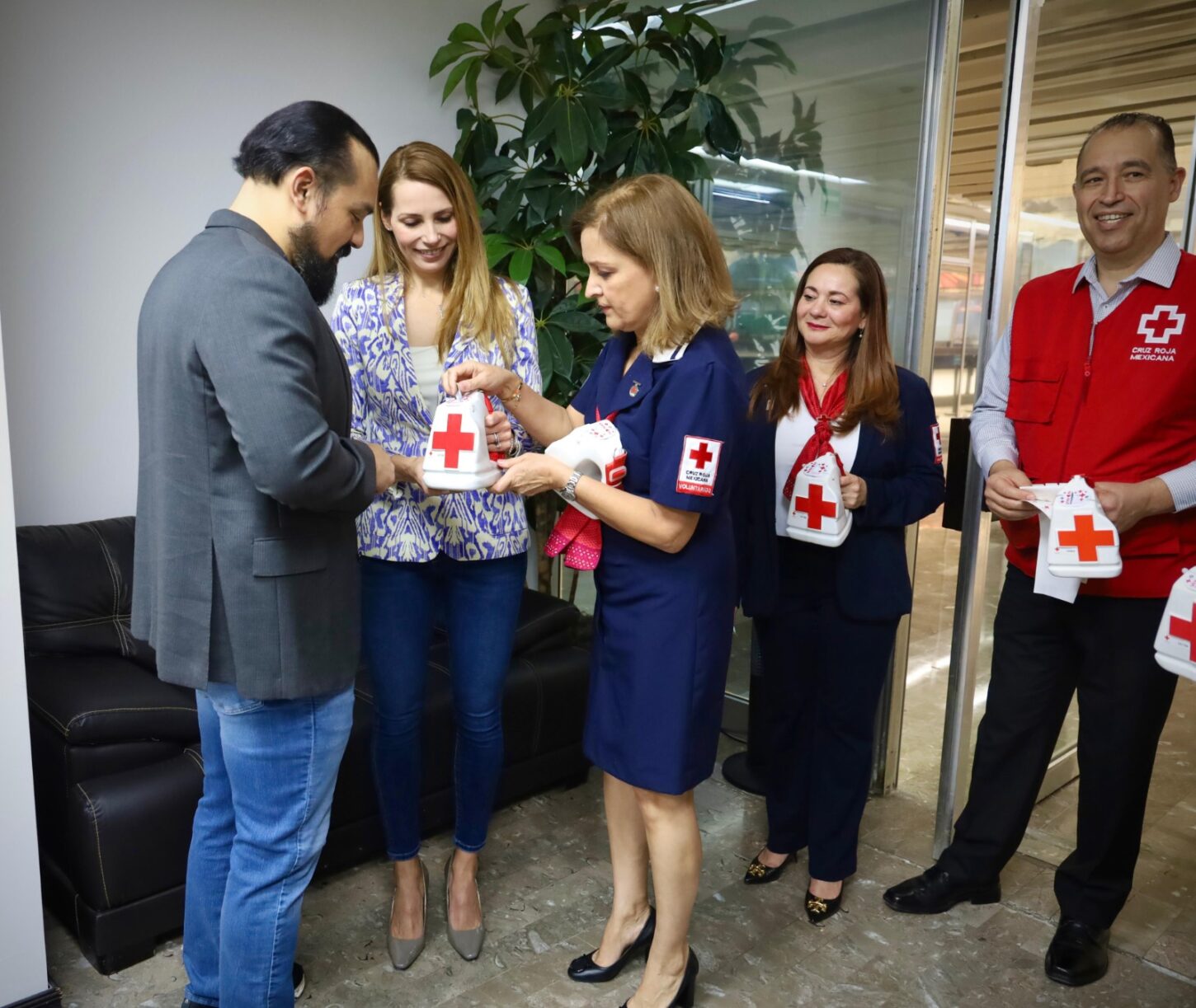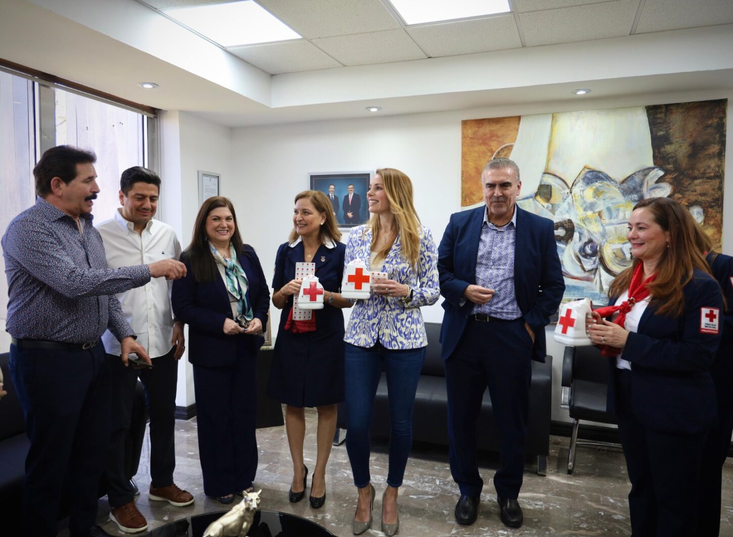 Acompañado por su esposa y presidenta del DIF municipal, Gaby Oyervides, así como por directivos y voluntarias de la Cruz Roja, el edil recibió en su oficina a representantes de la benemérita institución para dar el banderazo a la recaudación dentro del gobierno municipal.