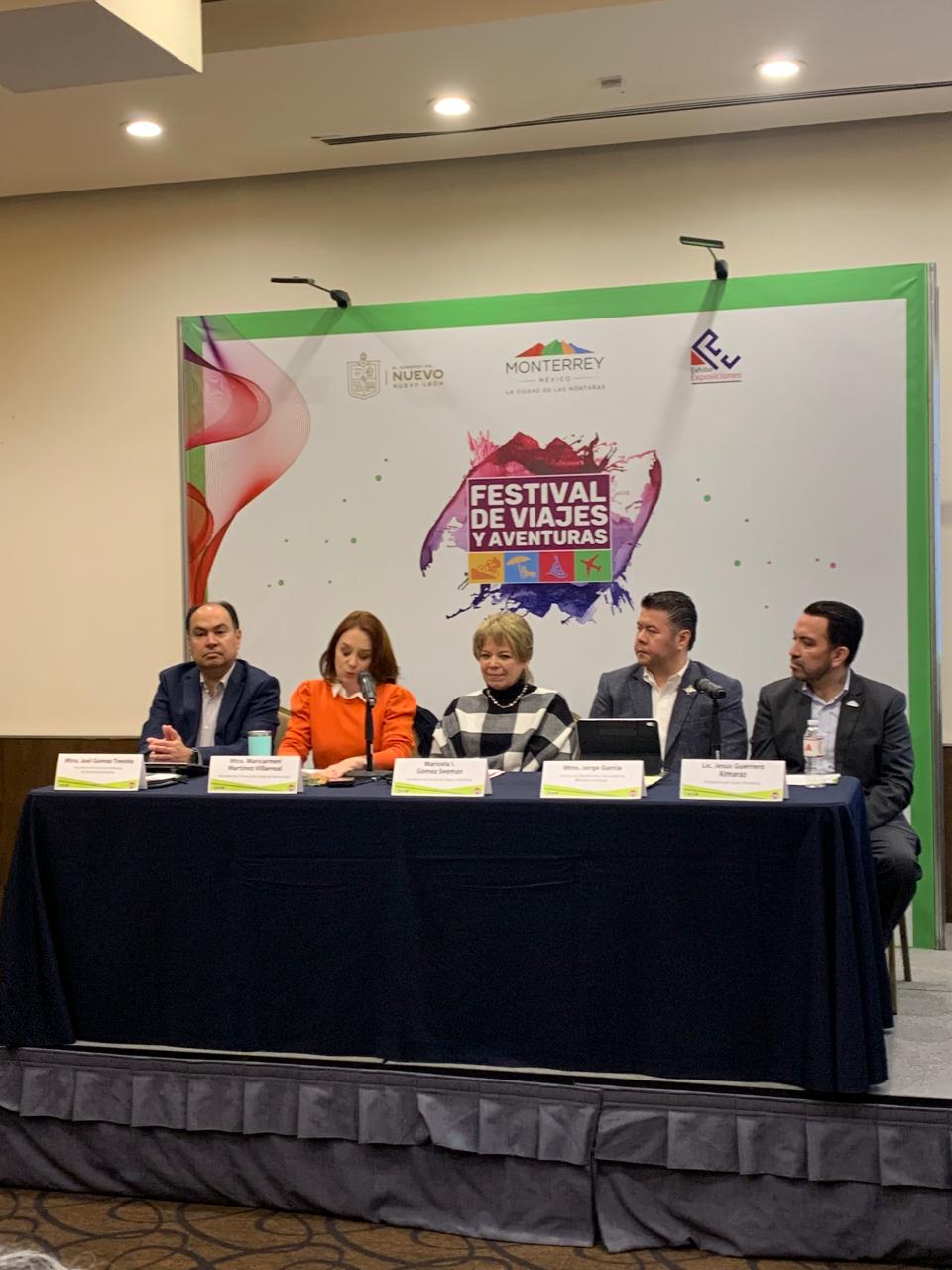 Gómez Treviño participó en conferencia de prensa con otros especialistas en turismo para informar sobre la Expo VI Festival de Viajes y Aventuras y el IV Congreso Nacional de la Industria Turística (CONIT), que se realizarán del viernes 14 al domingo 17 de marzo en CINTERMEX.