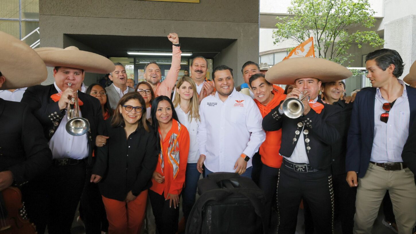 Previo a su registro los 26 aspirantes de MC a las diputaciones locales llevaron “serenata” a los del PRIAN en la explanada del Congreso Local, para despedirlos, porque la nueva mayoría será naranja, dijeron.