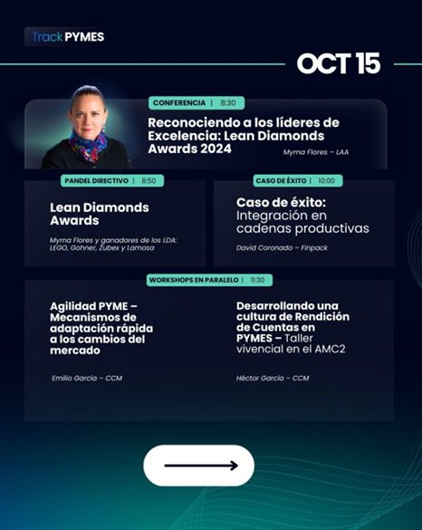 El evento reunirá a más de 700 participantes y ofrecerá más de 30 actividades, entre conferencias, talleres y paneles, enfocadas en transformación digital, excelencia operativa y la integración de PYMES en cadenas de valor globales. También se presentarán casos de éxito y visitas de benchmarking a empresas líderes para compartir mejores prácticas en gestión y producción.