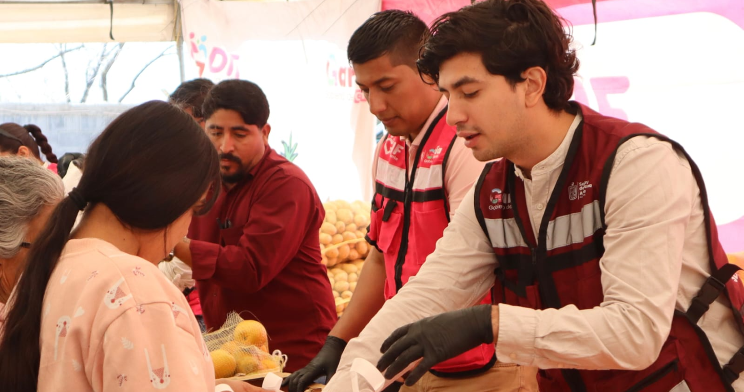 Durante la actividad se entregaron frutas, verduras, artículos de limpieza y tortillas recién hechas de la Tortillería de la Gente, además de alimento para perros y gatos, con el objetivo de apoyar la economía familiar de los sectores más vulnerables.