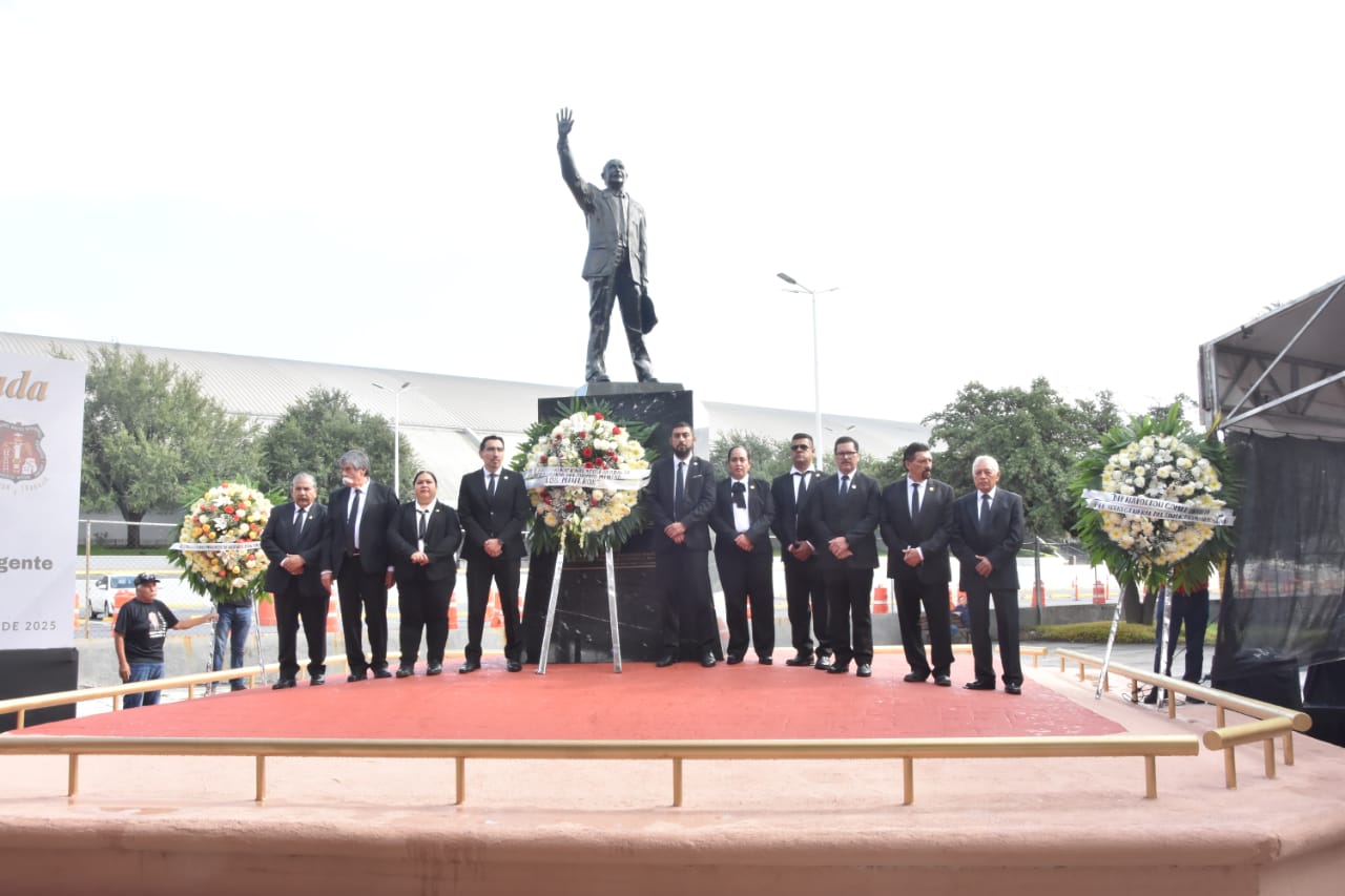 El homenaje se realizó en el acceso 2 del Parque Fundidora, en donde esta ubicada una estatua de bronce del desaparecido líder sindical.