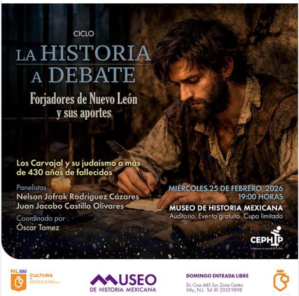 La primera sesión, el miércoles 25 de febrero, estará dedicada a la familia Carvajal y el judaísmo en el noreste novohispano, a más de 430 años de la muerte de sus integrantes, abordando las tensiones religiosas, persecuciones inquisitoriales y procesos de colonización que marcaron la región. Participan Nelson Jofrak Rodríguez Cázares y Juan Jacobo Castillo Olivares, con la moderación de Óscar Tamez.