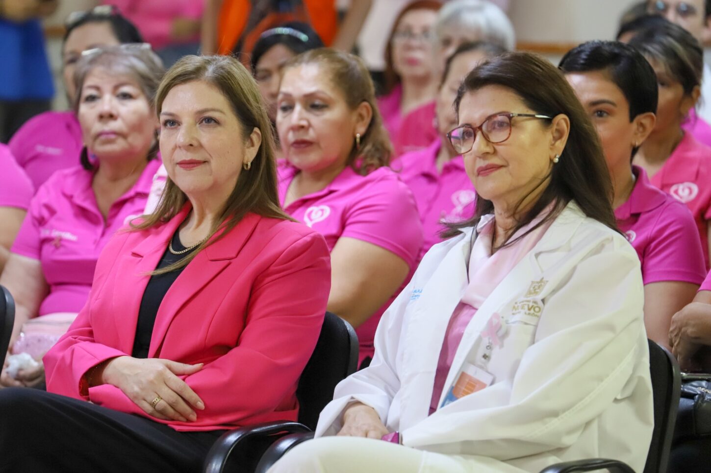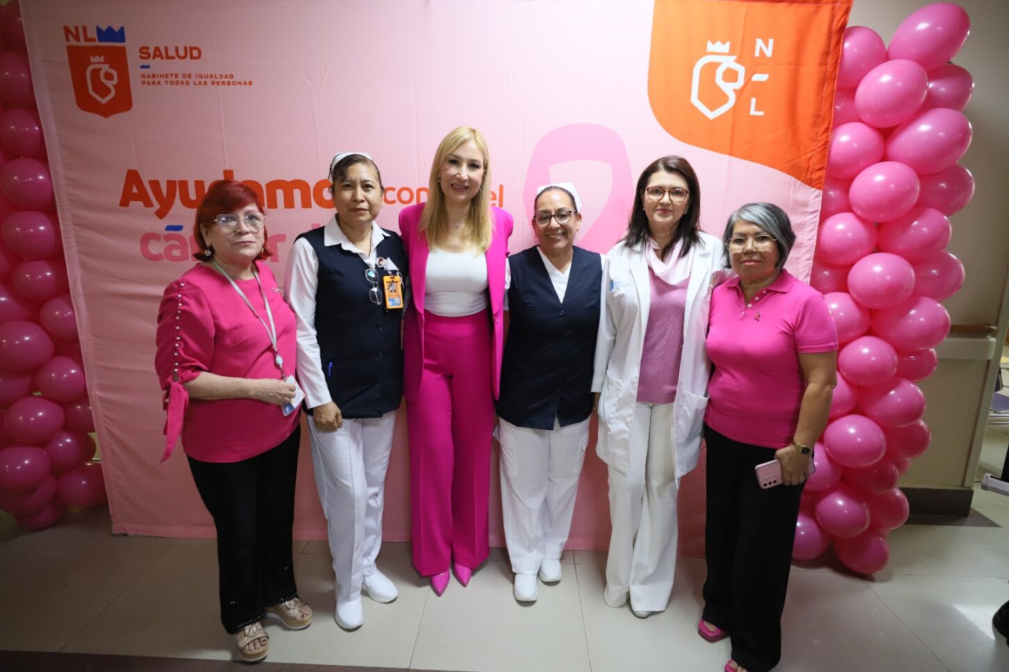 La Secretaria de Salud, Alma Rosa Marroquín, reconoció la labor del personal médico y destacó que Nuevo León es el único estado del país que ofrece una cobertura universal y gratuita para mujeres con cáncer de mama.