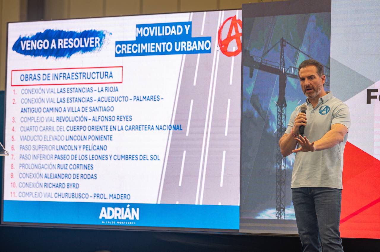 Una lista de 11 obras de infraestructura para mejorar la movilidad en Monterrey presentó este jueves el candidato a la presidencia municipal de la alianza “Fuerza y corazón por Nuevo León”, Adrián de la Garza Santos al gremio constructor del estado en una reunión en Cintermex.