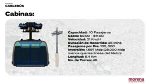 “Serían cabinas para 10 personas y tendrían una frecuencia de paso de entre 4 y 5 minutos, además de que el costo por persona estaría entre 9 y 11 pesos, costo que servirá para que sea auto sustentable”, indicó Paulina Flores, aspirante a la Presidencia Municipal de San Pedro Garza García.