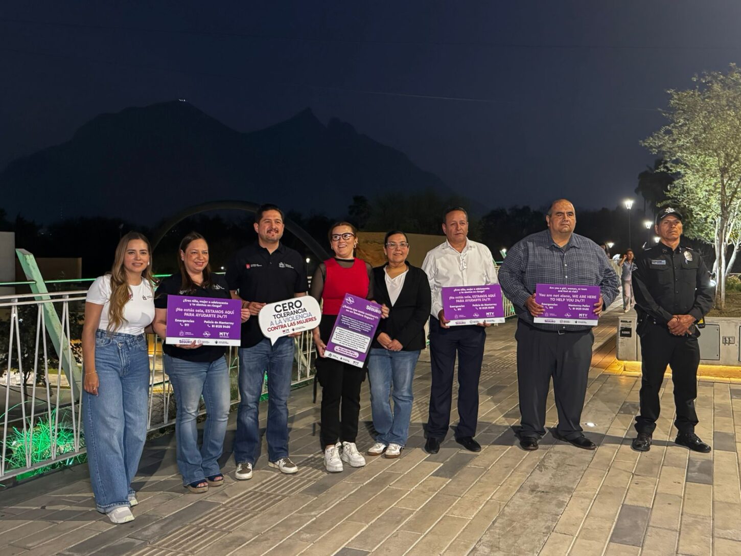 Como parte de la intervención en el Puente Verde, se llevaron a cabo acciones clave como la instalación y reforzamiento de iluminación, la colocación de cámaras de videovigilancia conectadas al sistema de monitoreo municipal, el incremento de rondines de la Policía de Monterrey y la instalación de señalética bilingüe (español–inglés) con números de emergencia y atención especializada para mujeres.