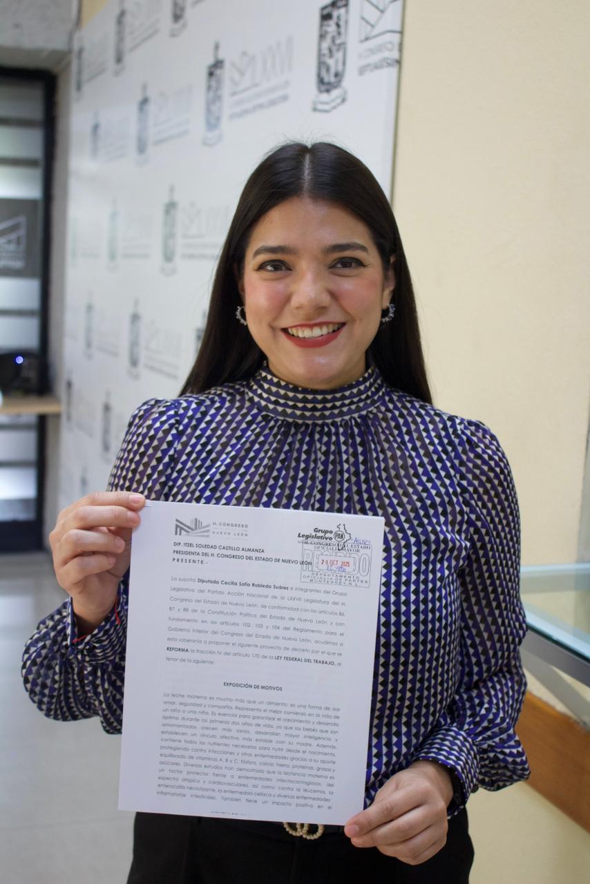 La legisladora presentó una iniciativa para reformar el Artículo 170 de la Ley Federal del Trabajo, estableciendo que durante el primer año de lactancia, las madres puedan contar con cuatro reposos extraordinarios de media hora cada uno, o dos reposos de 60 minutos, en un lugar adecuado e higiénico designado por la empresa.
