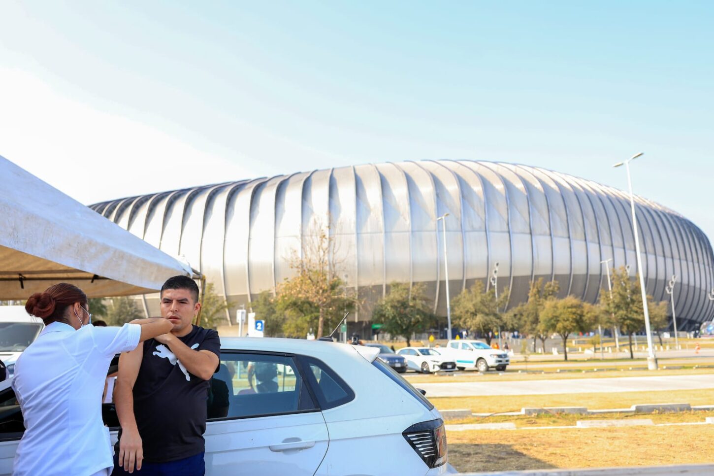 Durante el primer día de vacunación masiva en el Estadio BBVA, personal de la Secretaría de Salud del Municipio de Guadalupe aplicó más de 5 mil dosis contra el sarampión, en coordinación con el Gobierno del Estado.