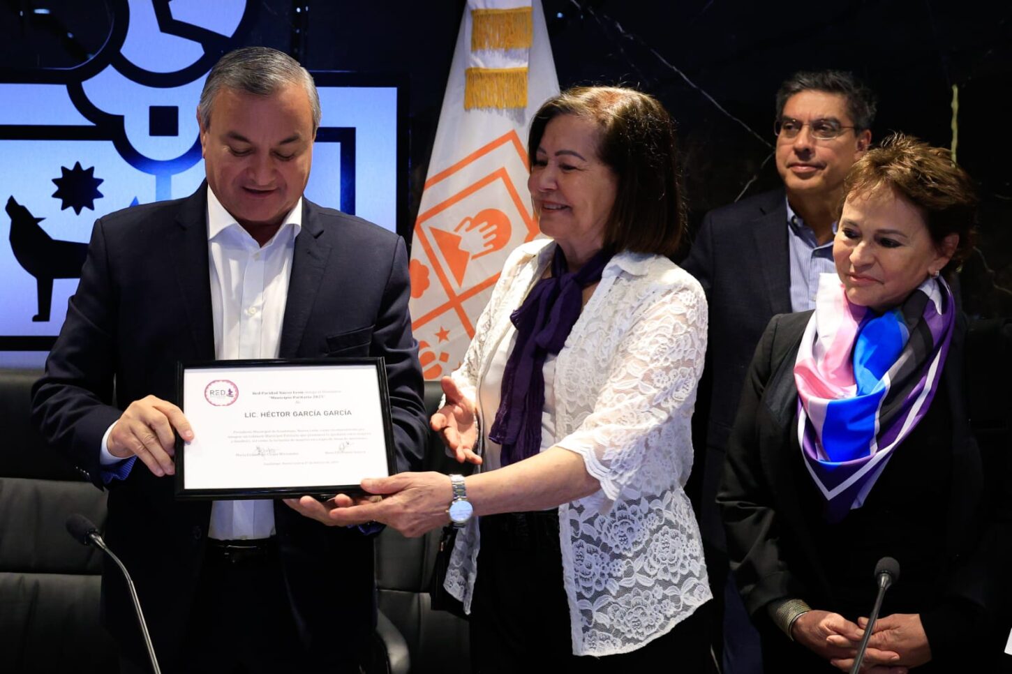 La organización Red Paridad Nuevo León A.C. entregó un reconocimiento al alcalde de Guadalupe, Héctor García García, por ser el primer municipio de Nuevo León en integrar un gabinete paritario. Este distintivo, denominado “Municipio Paritario 2025“, reconoce a aquellos municipios que han logrado formar gabinetes municipales con paridad de género, con el fin de sensibilizar a los gobiernos sobre la importancia de la igualdad en la toma de decisiones.