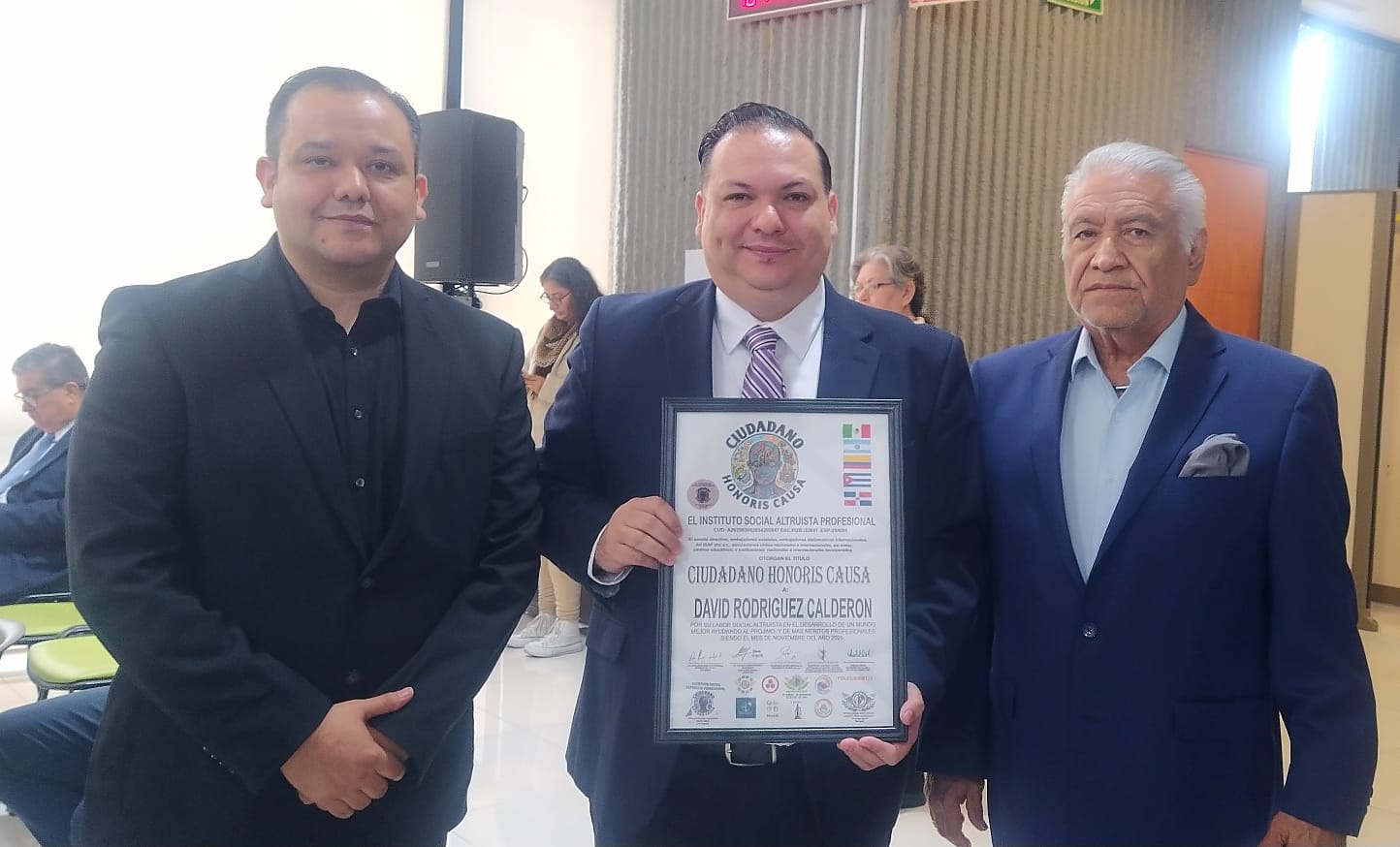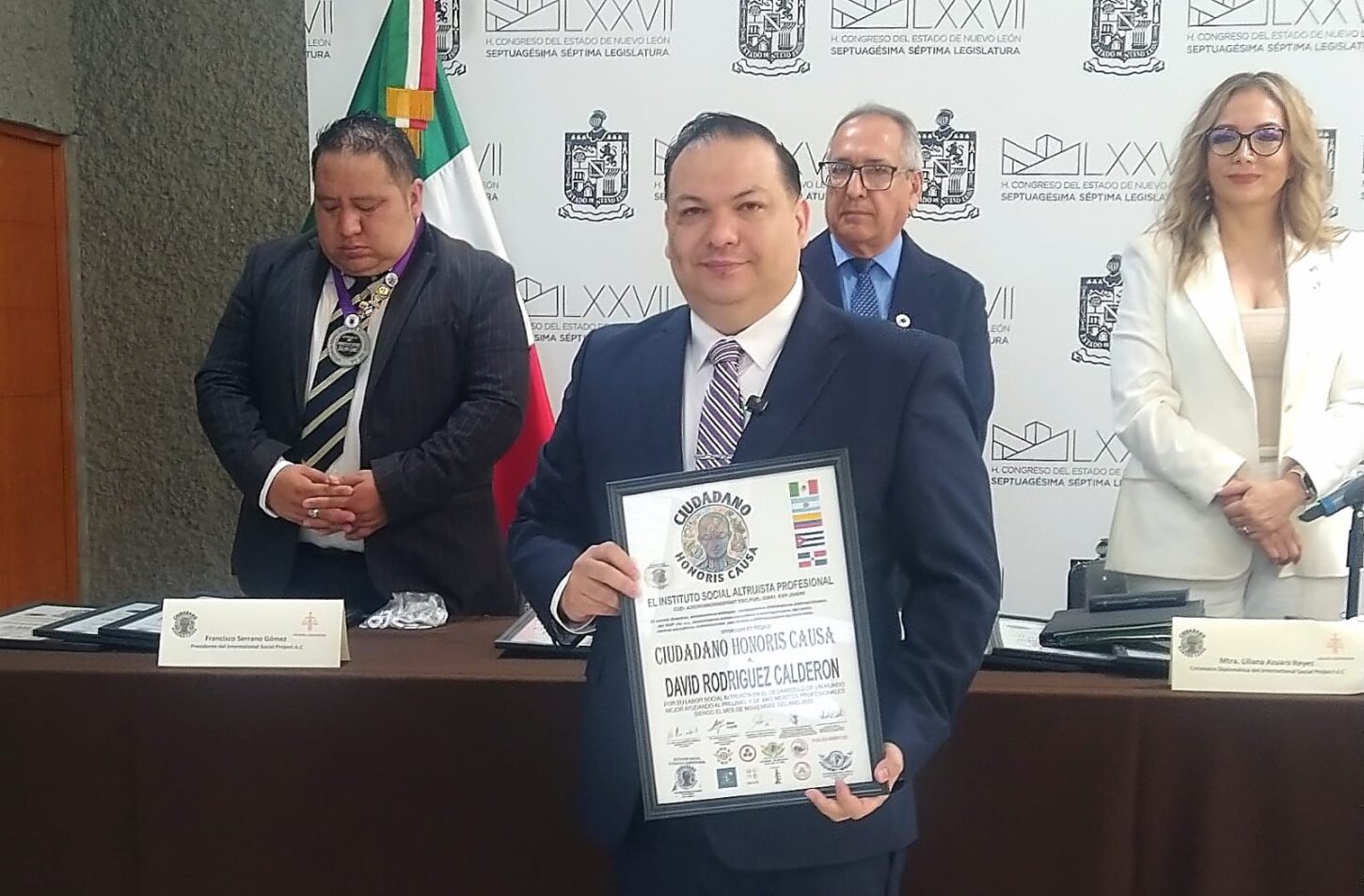 El Dr. David Rodríguez Calderón, Rector Presidente del Colegio de Abogados de Nuevo León A.C., recibió el reconocimiento Ciudadano Honoris Causa otorgado por el Instituto Social Altruista Profesional, en una ceremonia realizada este 28 de noviembre en el Congreso del Estado.