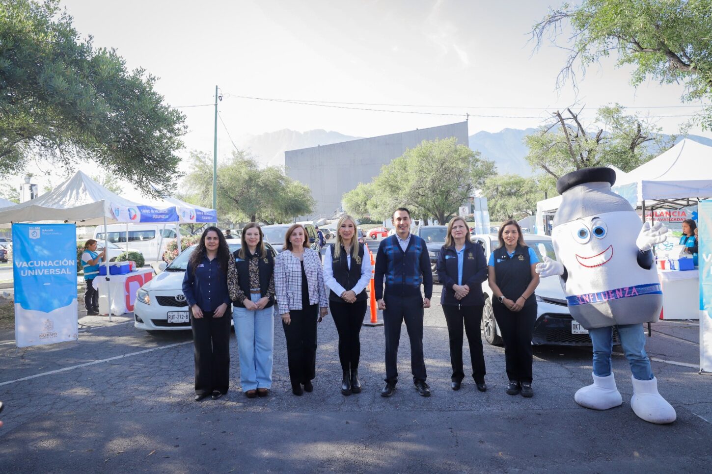 Ante el pronóstico de descenso en las temperaturas, la Secretaría de Salud de Nuevo León intensificó su campaña de vacunación contra Influenza, COVID-19 y Neumococo con la instalación de un módulo drive-thru en el Auditorio San Pedro.
