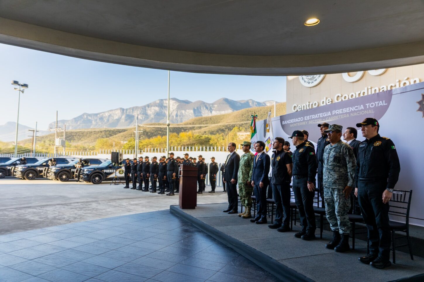 En vísperas de los partidos de repechaje rumbo al Mundial de Futbol 2026, el Mandatario estatal, acompañado de funcionarios estatales, mandos y elementos de Fuerza Civil, así como integrantes de la Mesa de Seguridad, dio el banderazo de salida a las unidades que participarán en este operativo de vigilancia intensiva en la zona sur de la ciudad. Asimismo, anunció que próximamente se desplegará en todas las carreteras que convergen a la entidad para blindar totalmente a Nuevo León.