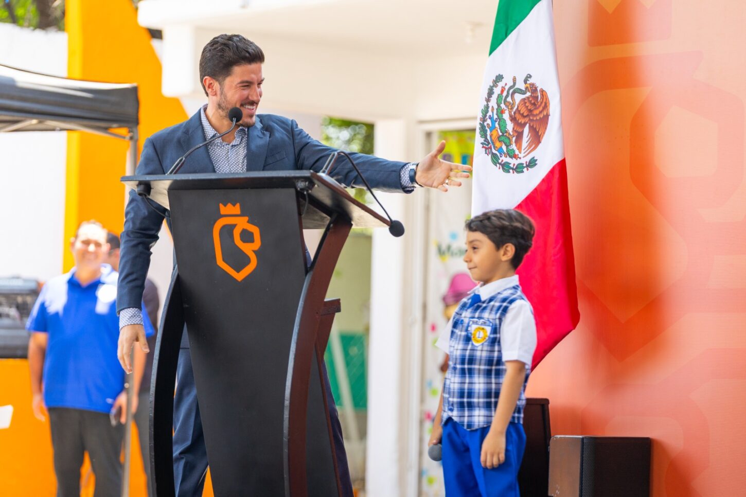 El anuncio se realizó durante el arranque de clases en la primaria Primaria Club de Leones 19 “Rómulo Garza”, donde el mandatario estuvo acompañado por alumnos, docentes y autoridades estatales.
