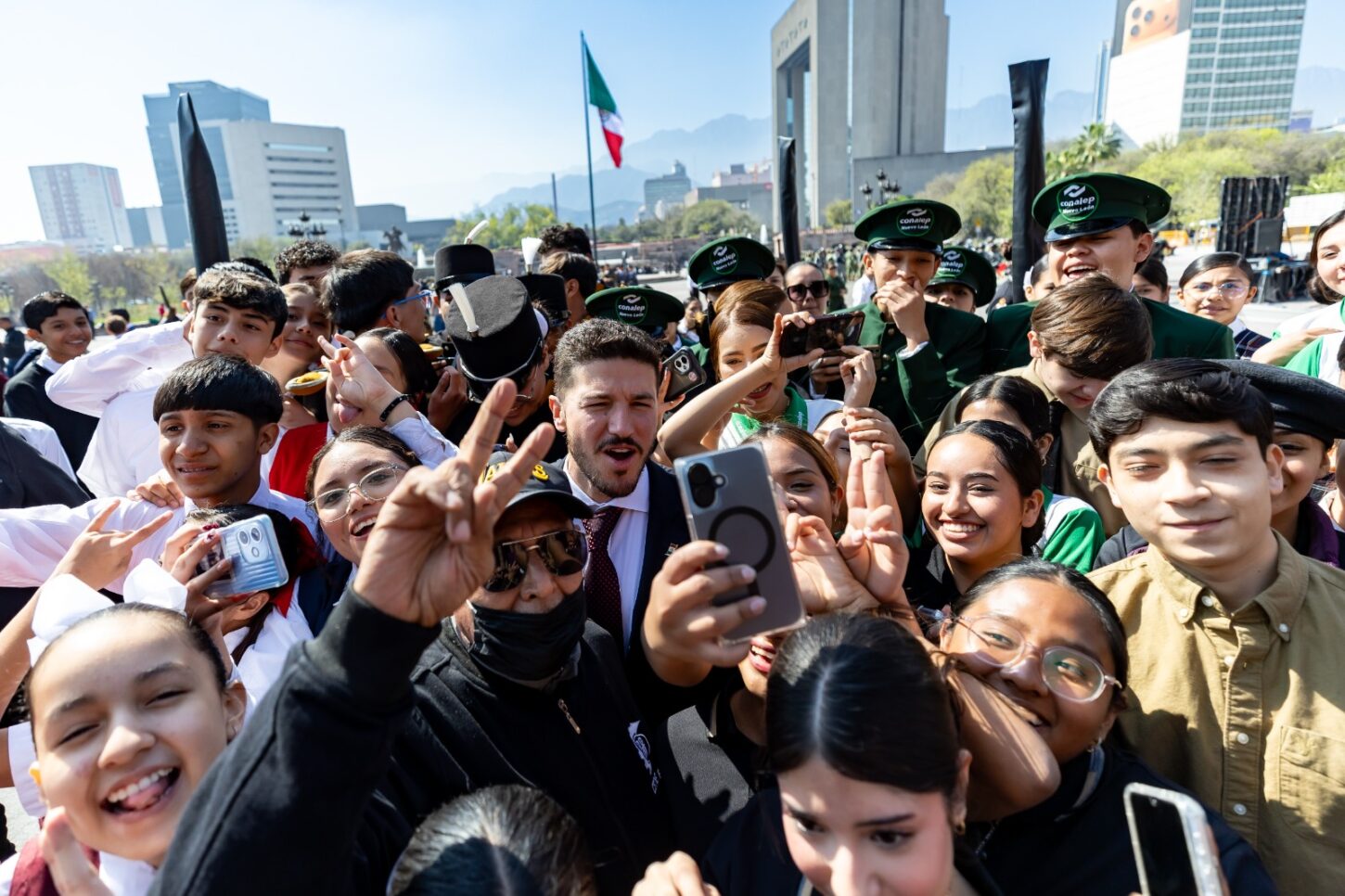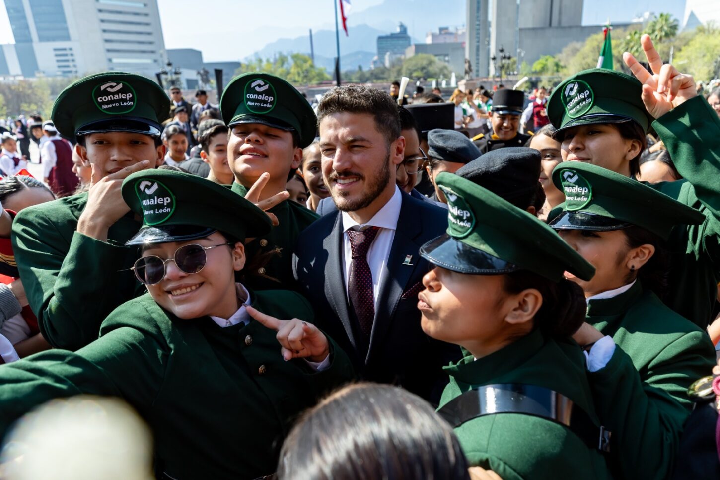 El evento incluyó un enlace nacional con la Presidenta Claudia Sheinbaum Pardo, quien tomó protesta a 920 escoltas escolares del país. Asimismo, el Gobernador abanderó escoltas de planteles educativos y asociaciones civiles de Nuevo León.