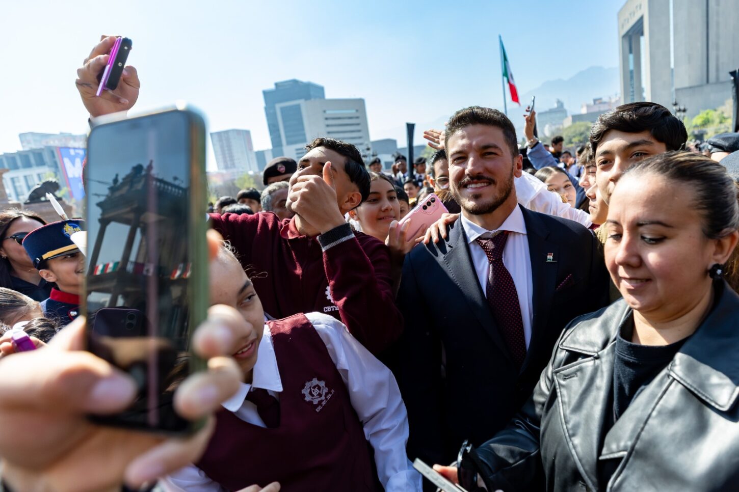 Desde la Explanada de los Héroes, y acompañado por Mariana Rodríguez y el Secretario General de Gobierno Miguel Flores Serna, el mandatario destacó que la bandera no solo simboliza identidad, sino el compromiso de cada generación con la educación, la formación de ciudadanía y la creación de oportunidades para niñas, niños y jóvenes.