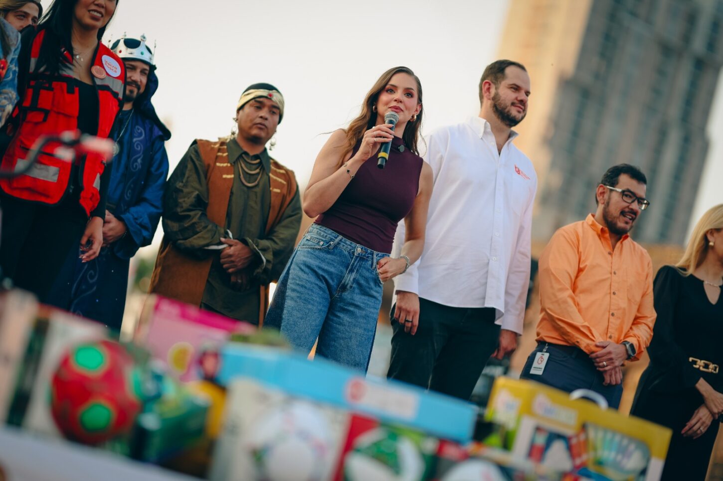Como parte del festejo, 3 mil 500 niñas y niños que encontraron el Niño Dios en la rosca recibieron juguetes y regalos, además de disfrutar chocolate caliente, música de la Banda de Música del Estado y el espectáculo de Los Payasónicos.