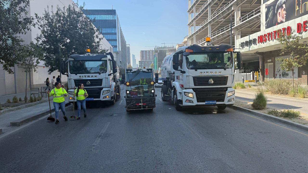 Decenas de elementos de la Secretaría de Servicios Públicos de Monterrey realizaron un amplio operativo de limpieza para recolectar más de dos toneladas de basura generadas tras el desfile por el 115 aniversario de la Revolución Mexicana.