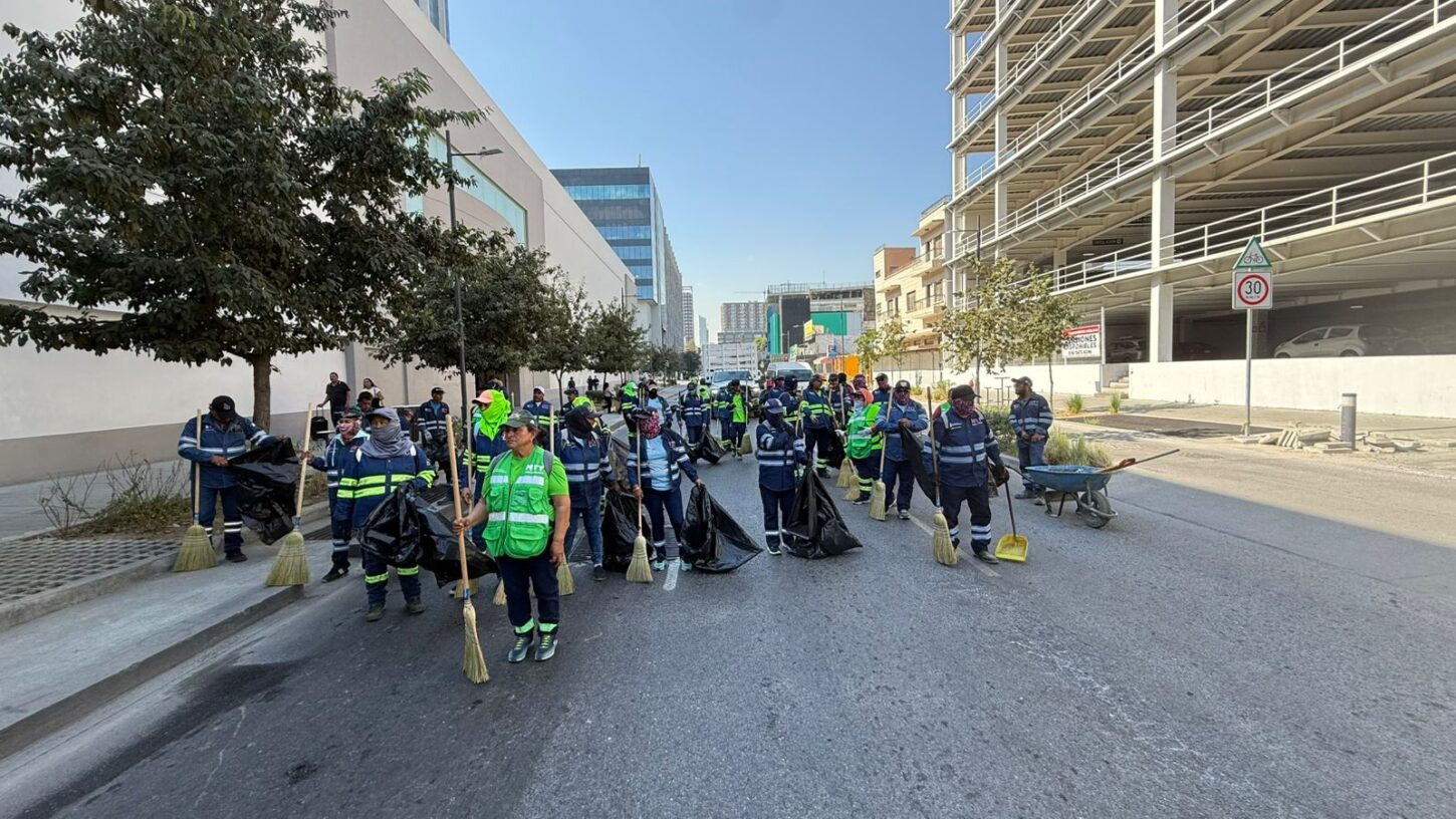 Decenas de elementos de la Secretaría de Servicios Públicos de Monterrey realizaron un amplio operativo de limpieza para recolectar más de dos toneladas de basura generadas tras el desfile por el 115 aniversario de la Revolución Mexicana.