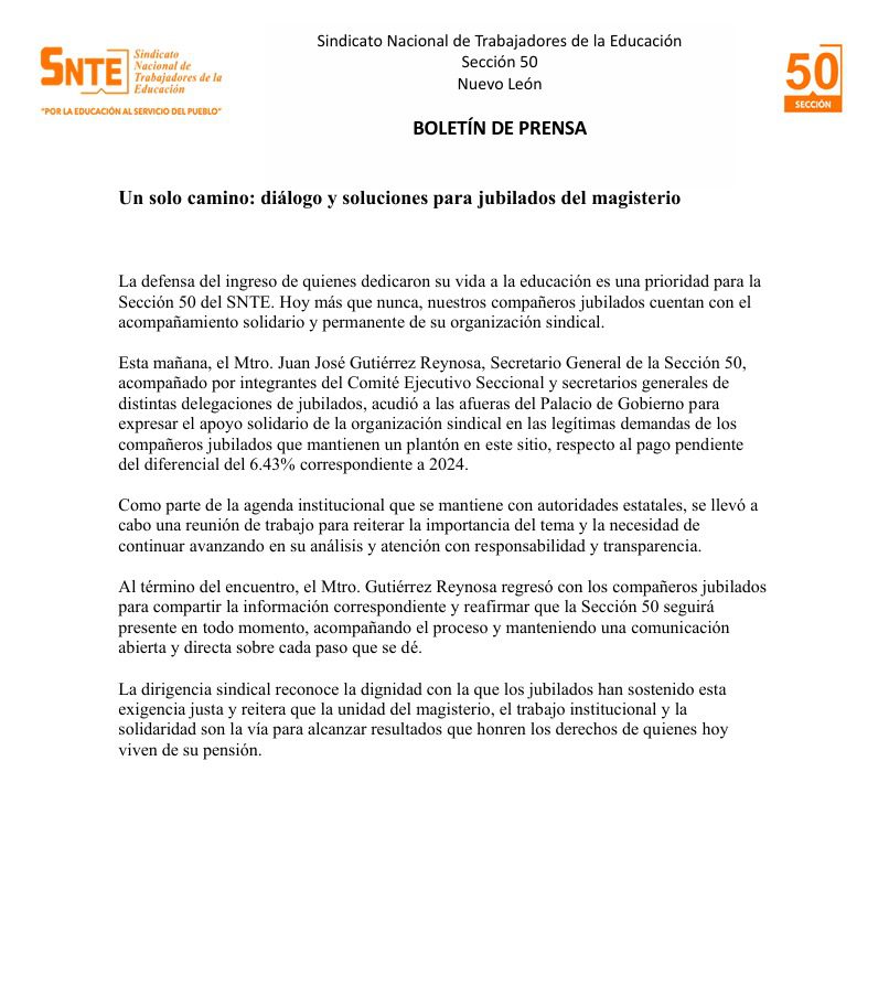 “Se va a hacer la petición para que sea incluida en el presupuesto 2026, además de la situación de las pensiones que se nueva fortalecer, se incluyen otros temas de la sección“, señaló Juan José Gutiérrez Reynosa.