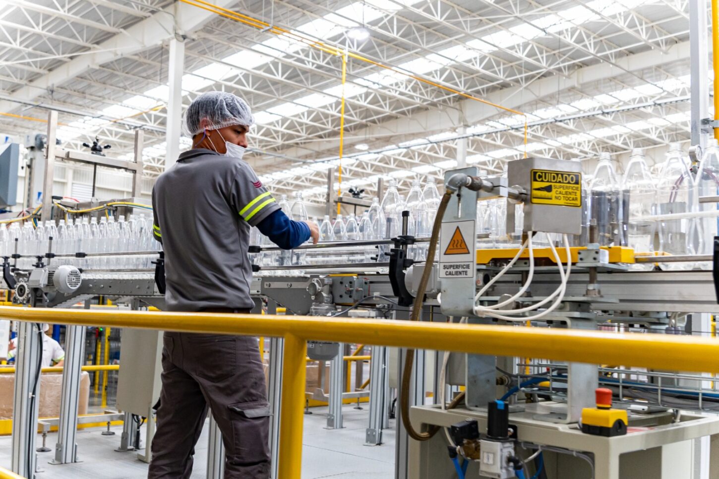 Actualmente, la empresa procesa botellas con contenido reciclado, que va del 30% al 100%, proveniente de recolección local.