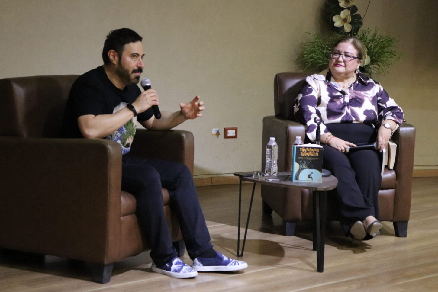 El escritor conversó con los alumnos de las preparatorias 3, 2, 8, 23 y 25 sobre su obra Los fantasmas de Fernando, publicada por el Fondo de Cultura Económica dentro de la colección A la orilla del viento, un libro que, según explicó.