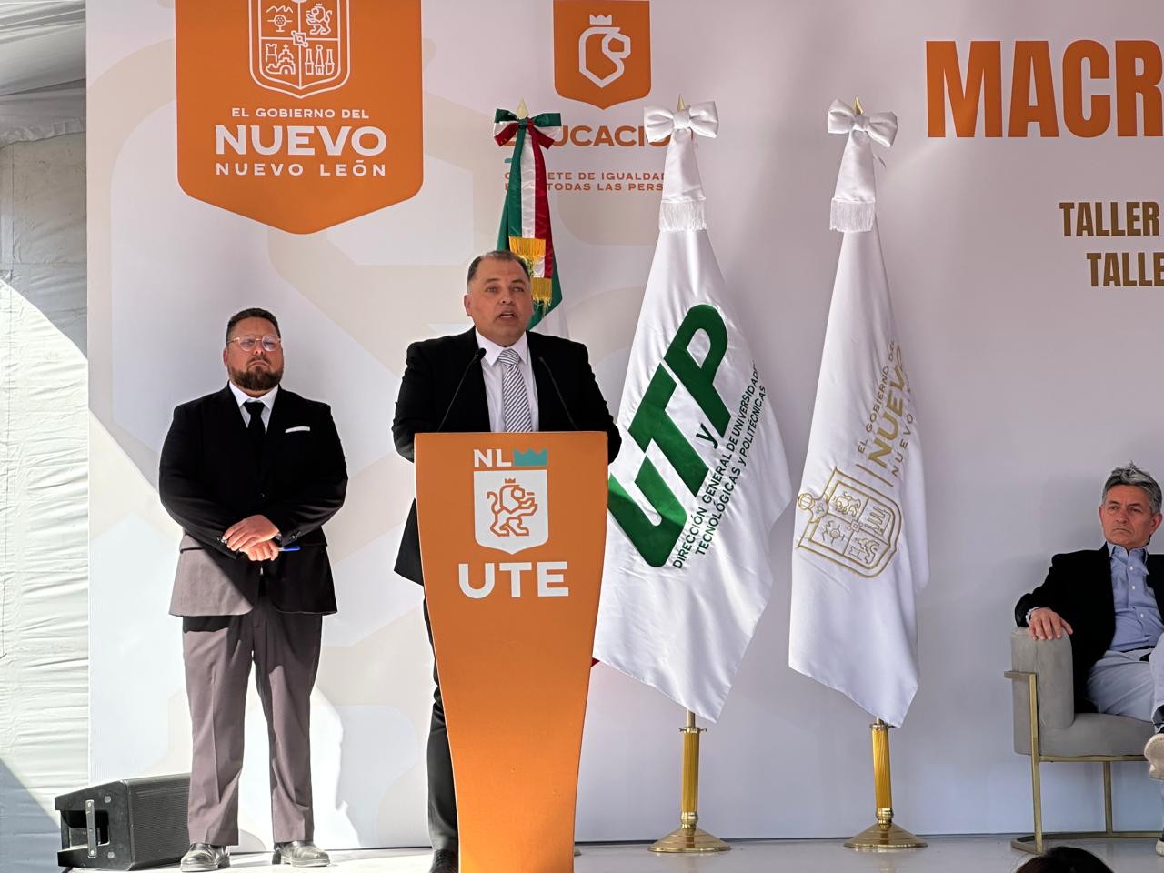 El Rector, Jorge Gutiérrez Leal, destacó ante estudiantes y personal académico las seis carreras tecnológicas que se imparten en el campus de General Escobedo, subrayando la pertinencia de los planes de estudio.