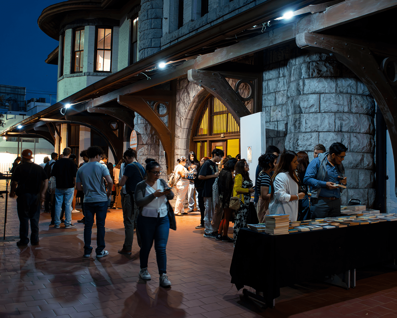 La velada inició con el tradicional “tendido de libros“, un espacio de venta, intercambio y distribución de ejemplares, incluidos los llamados “libros libres“, promoviendo el acceso a la lectura para todas las personas.